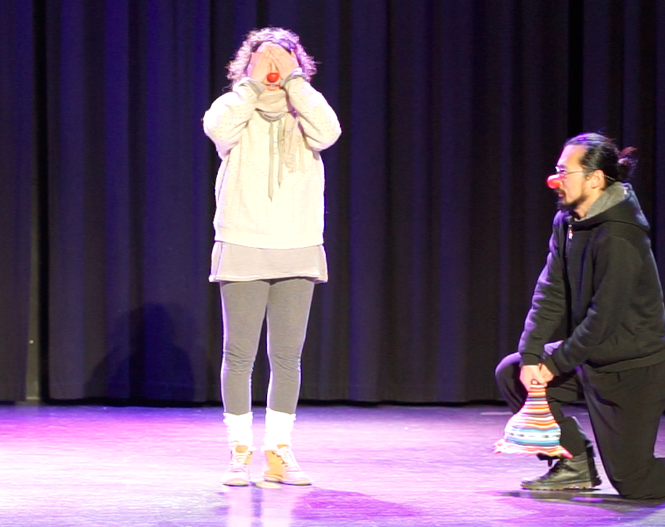 A través de la técnica del clown y el teatro creamos dinámicas de una, dos o todas las personas que componen el grupo para indagar en nuestras posibilidades creativas. De esta manera ampliar el bagaje escénico y permitirnos crecer y avanzar en los objetivos que cada una de las personas participantes se proponga.